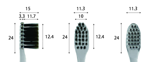 ブラシに練りこまれた黒真珠のミクロの凹凸と先細りのテーパーブラシは歯の隙間に付着した汚れや歯垢を絡めとります